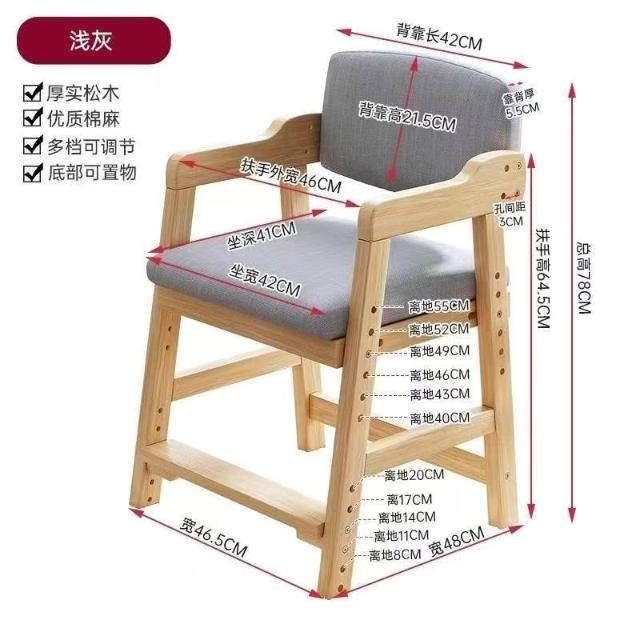 實木椅 學習椅 學生寫字椅 可調節高度椅子 靠背椅 餐椅 學生學習椅 木椅子 工作椅 升降椅 吃飯椅子