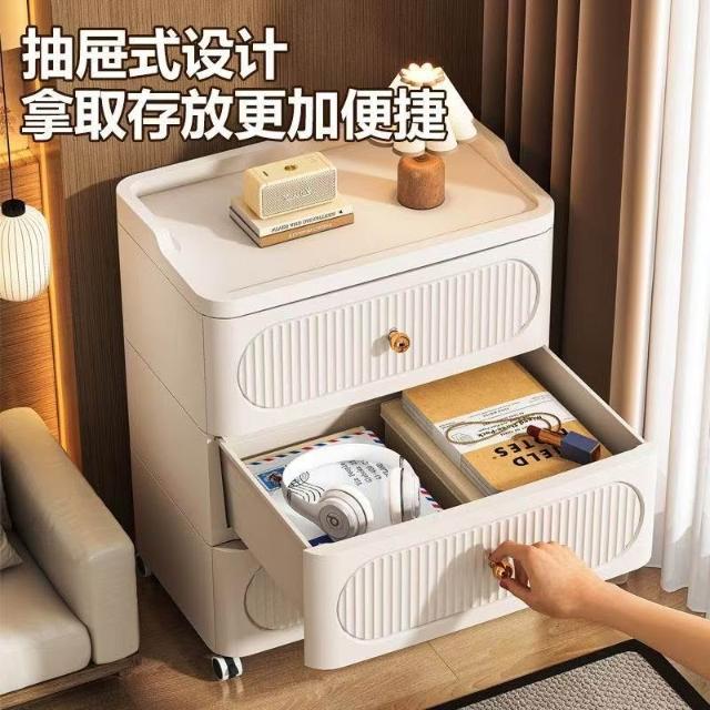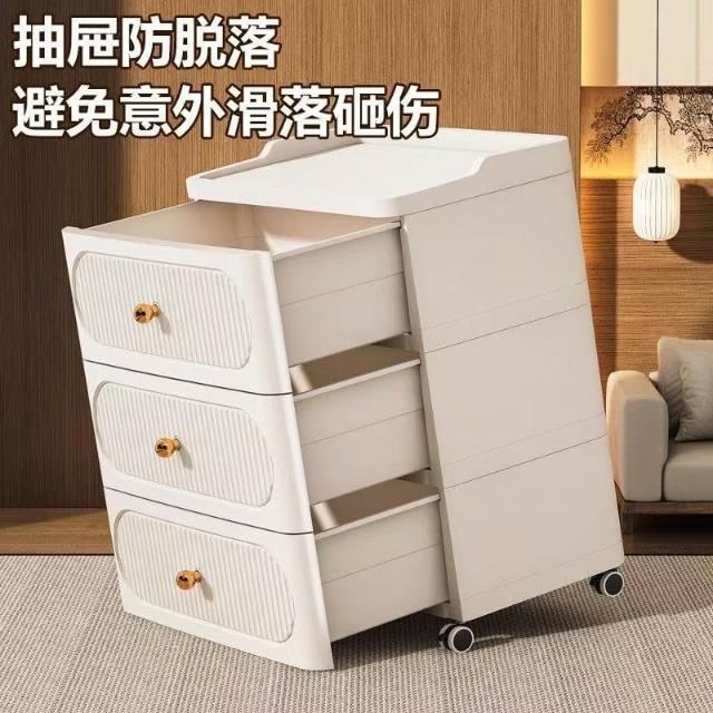 一體式收納櫃塑料收納櫃 塑料儲物櫃 夾縫櫃 可移動儲物柜 臥室床邊櫃 廁所收納柜
