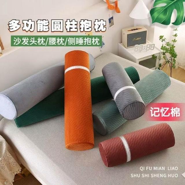 記憶棉圓柱枕 長條枕頭 頸椎抱枕 沙發枕頭 靠枕 靠墊 一枕多用 辦公室椅子腰靠