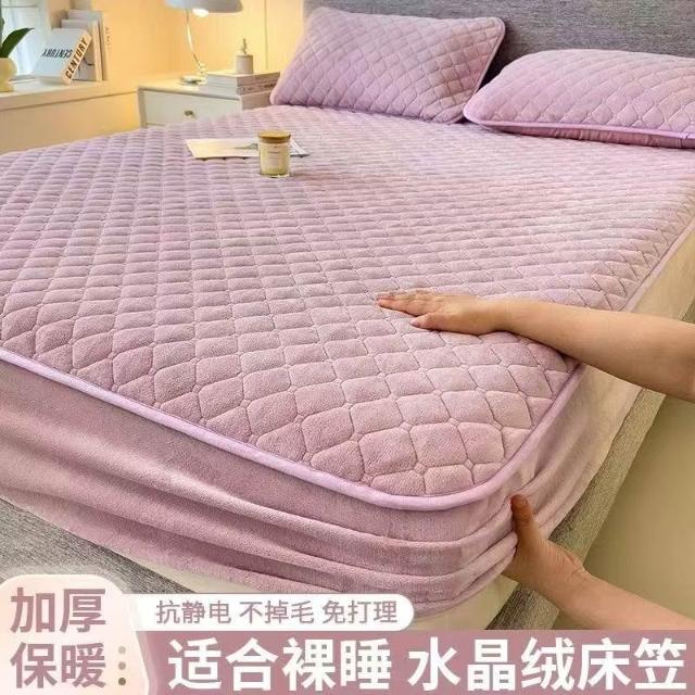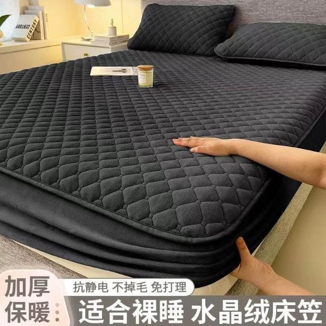 秋冬加厚床罩 純色水晶絨床笠 雙人床罩 加大雙人床包 床墊保護套 全包床單 30cm厚度可用 保暖床罩