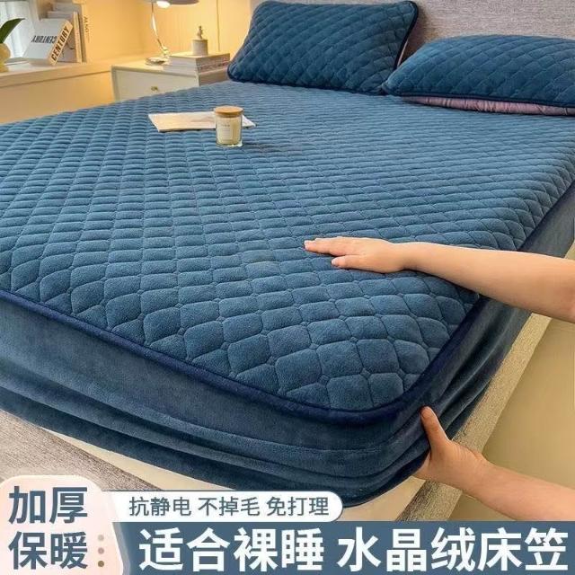 秋冬加厚床罩 純色水晶絨床笠 雙人床罩 加大雙人床包 床墊保護套 全包床單 30cm厚度可用 保暖床罩