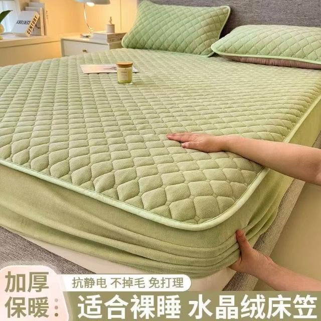 秋冬加厚床罩 純色水晶絨床笠 雙人床罩 加大雙人床包 床墊保護套 全包床單 30cm厚度可用 保暖床罩