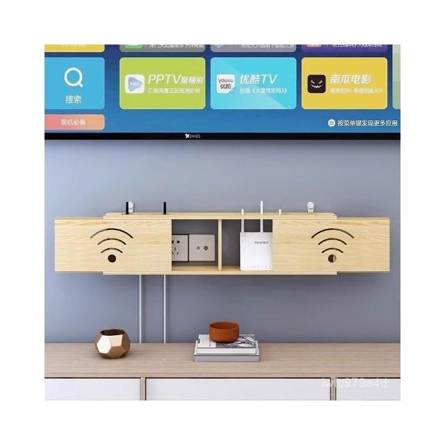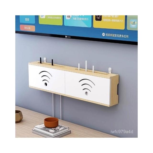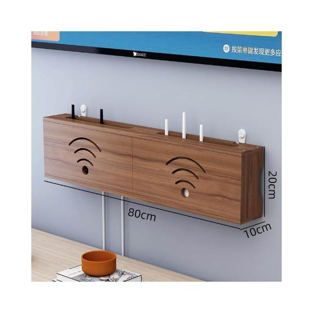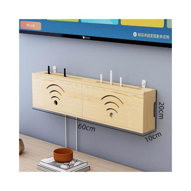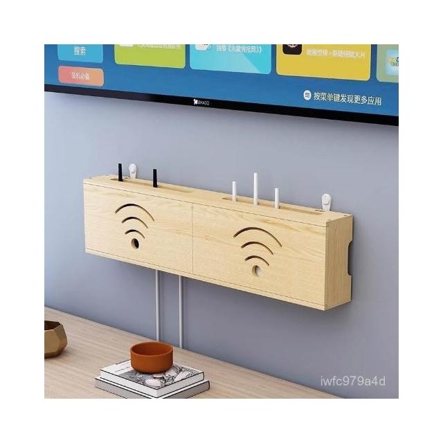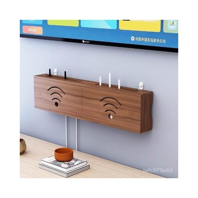 路由器收納盒實木壁掛墻上wifi機頂盒插座插排置物架免打孔