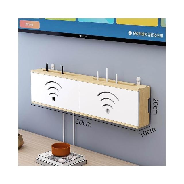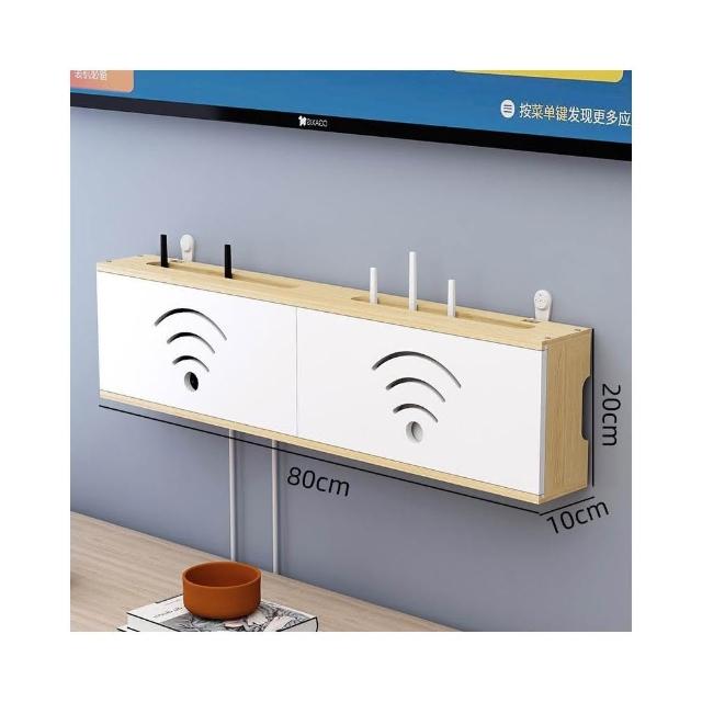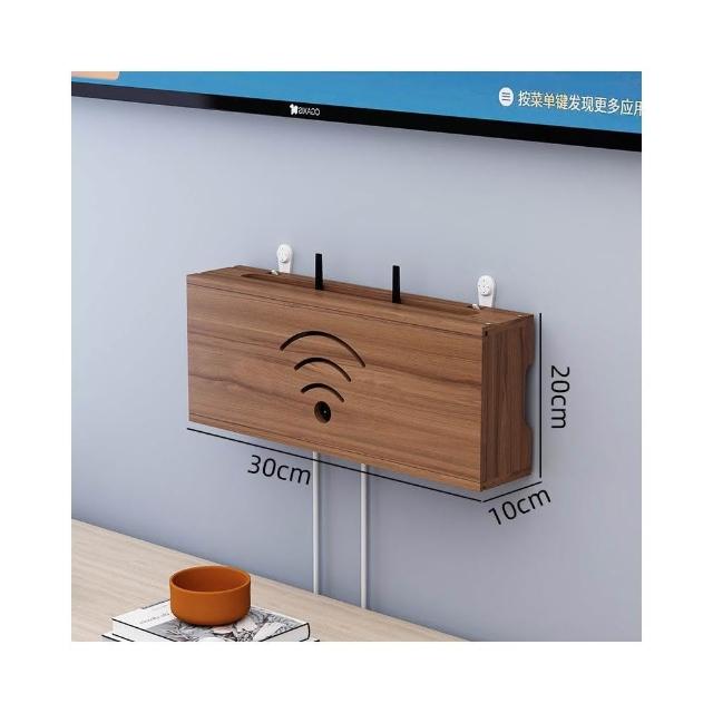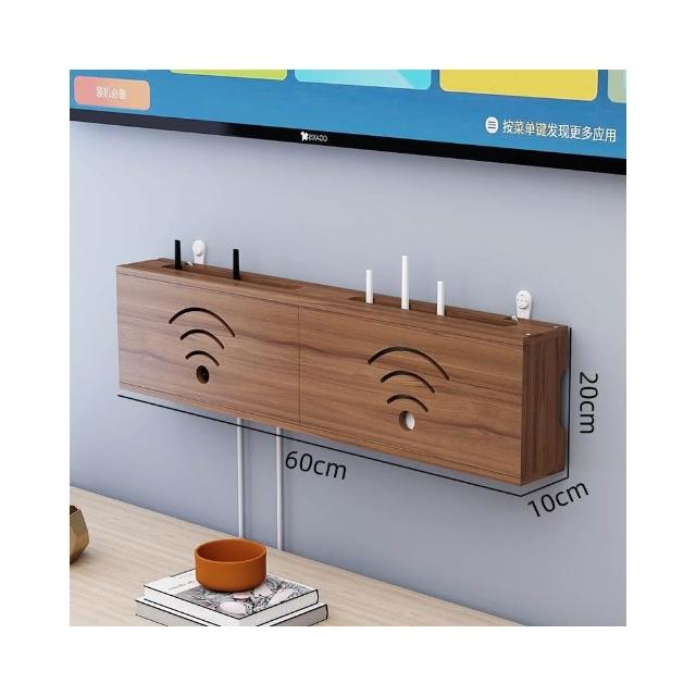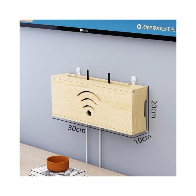 路由器收納盒實木壁掛墻上wifi機頂盒插座插排置物架免打孔