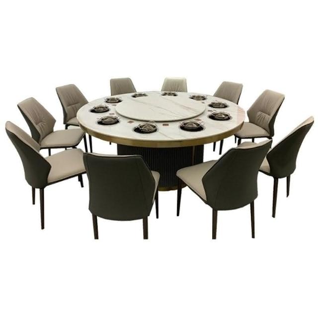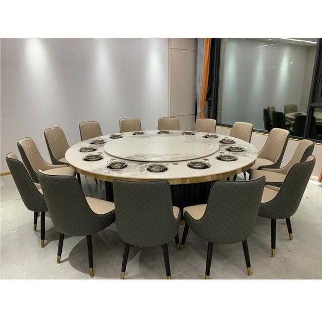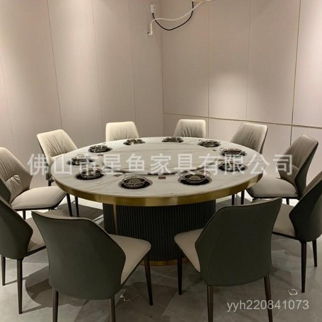 免運 輕奢餐桌 餐桌 酒店電動餐桌大圓桌飯店16人20人會所包廂巖闆單人鍋下沉火鍋桌椅