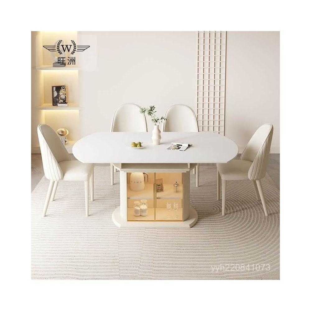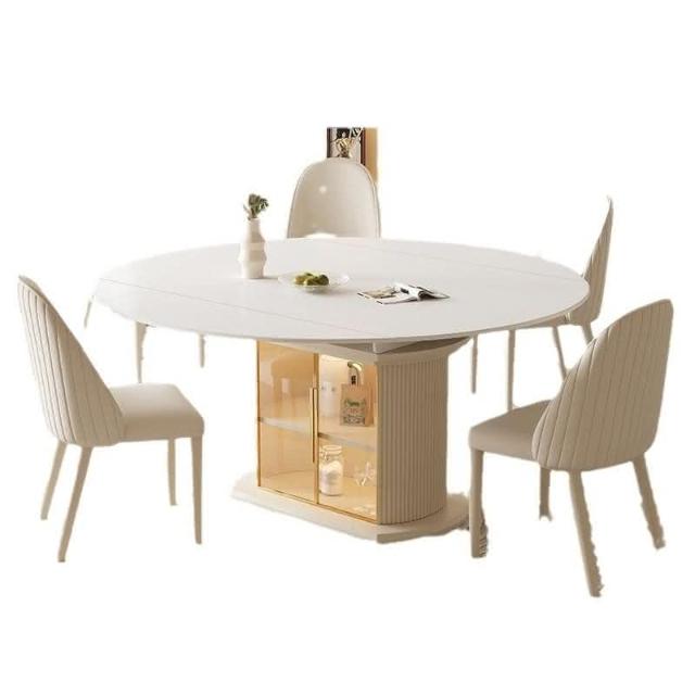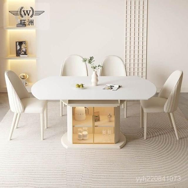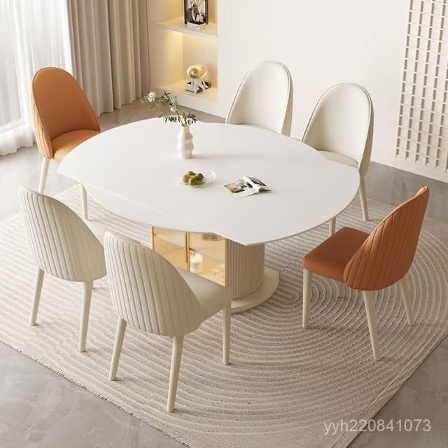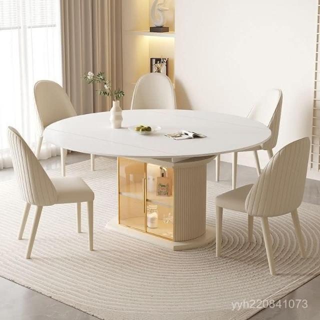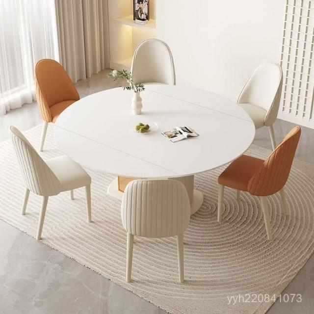 免運 輕奢餐桌 餐桌 輕奢奶油風巖闆餐桌餐椅小戶型家用組閤現代簡約可可伸縮折疊圓桌