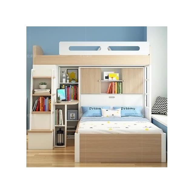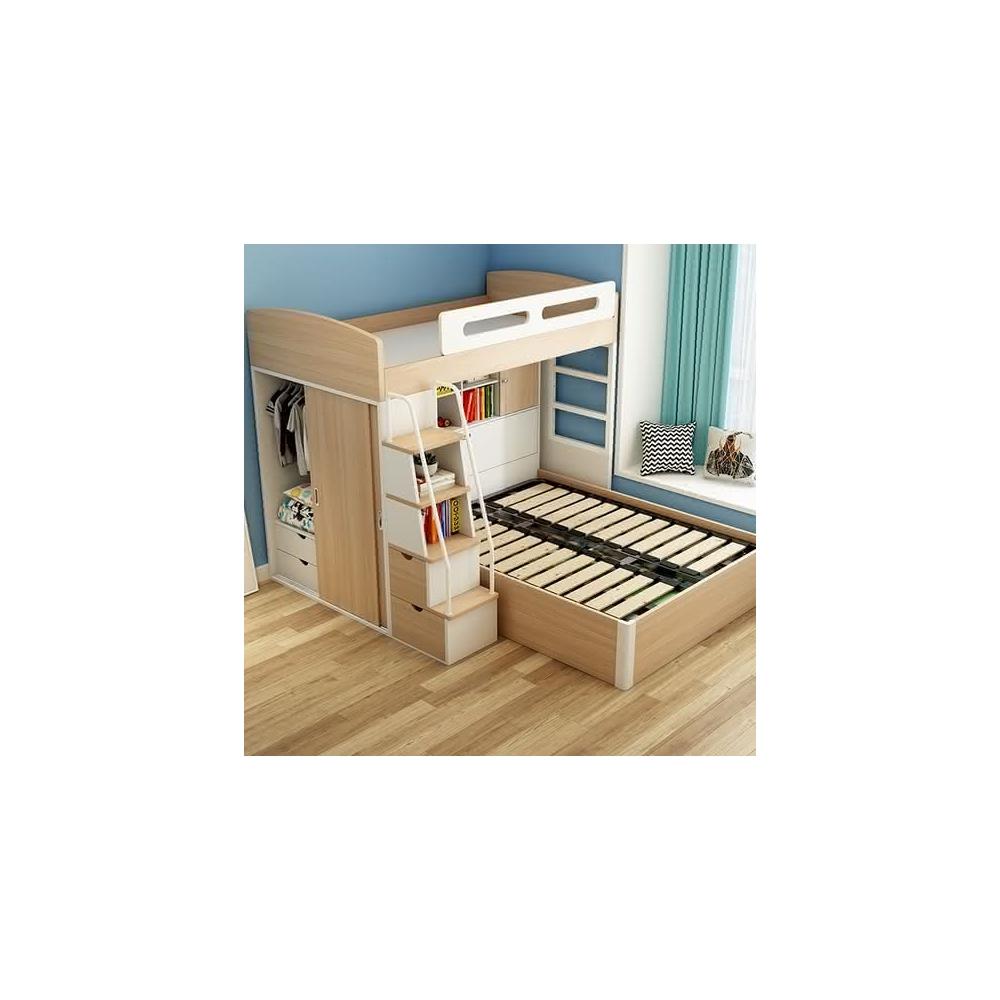 萬達木業 錯位型上下床帶衣櫃小戶型高低床多功能兒童上下鋪子母床交錯式子母床 雙層床架 高腳床 高架床 儲物多功能床架
