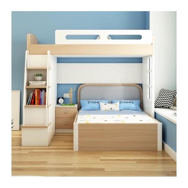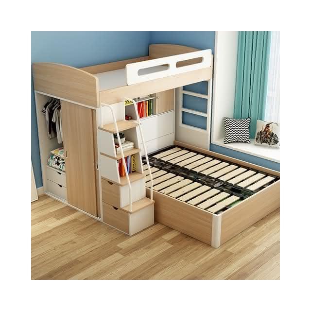 萬達木業 錯位型上下床帶衣櫃小戶型高低床多功能兒童上下鋪子母床交錯式子母床 雙層床架 高腳床 高架床 儲物多功能床架