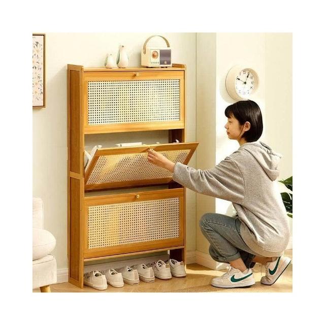 超薄款翻鬥鞋櫃 入戶鞋櫃 家用實木鞋架靠牆玄關櫃 窄鞋架子 多層收納架 竹制鞋櫃