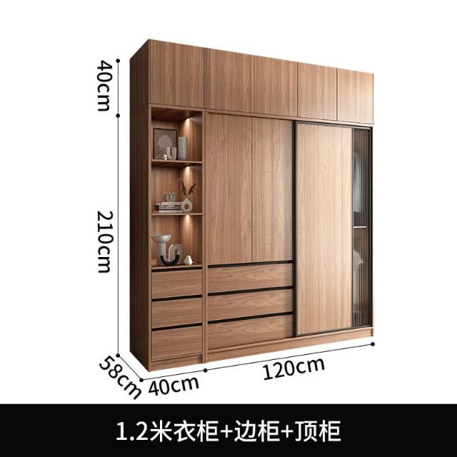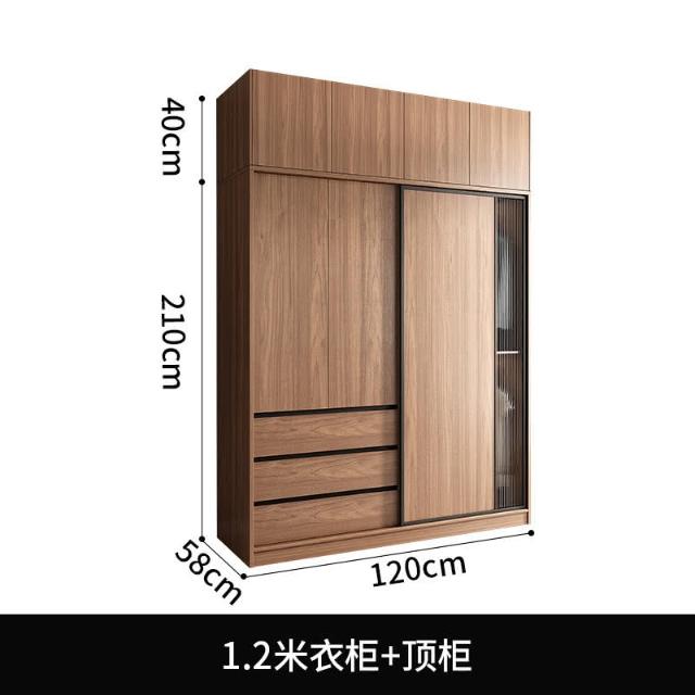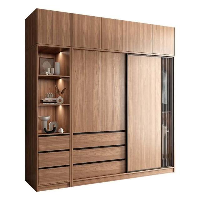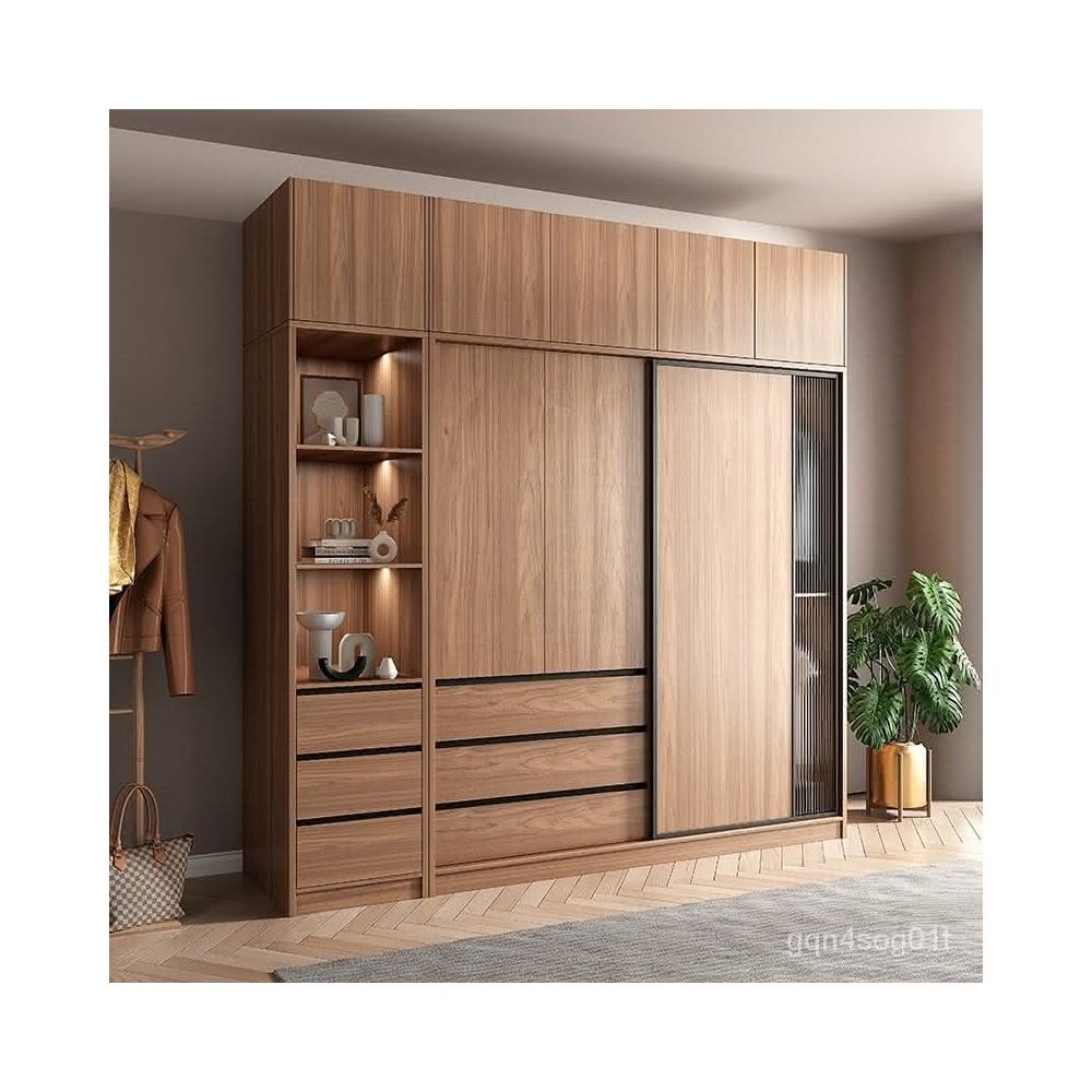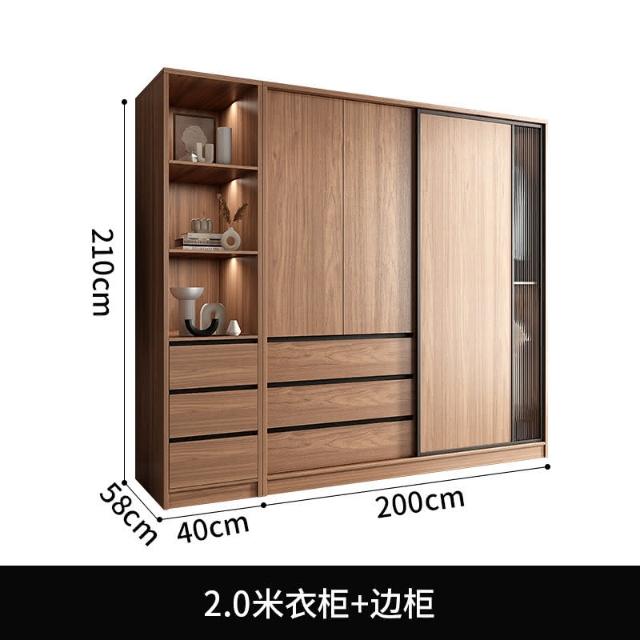廠家直銷 北歐衚桃木色推拉門衣櫃家用臥室現代簡約玻璃小戶型組閤移門櫃子