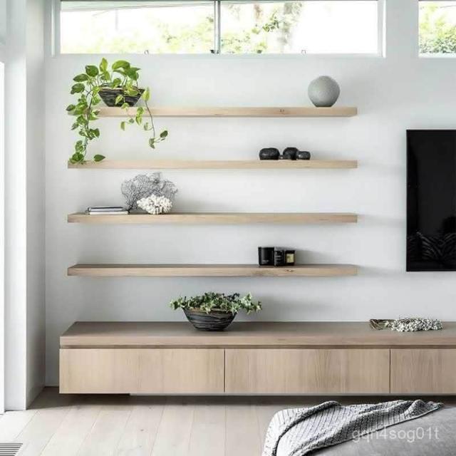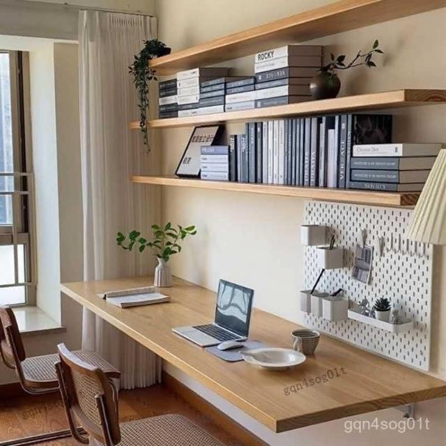 廠傢直銷 純實木壁掛書架書桌原木大闆一字闆墻上置物架隔闆掛墻懸空桌