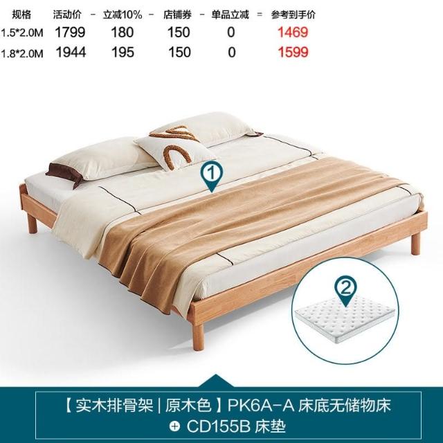 免運現貨 床 實木床架 無床頭床架 全實木床 雙人日式實木床架 原木床 高腳床架 排骨架 1.5米高腳排骨床架