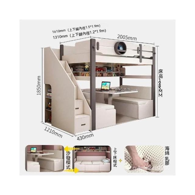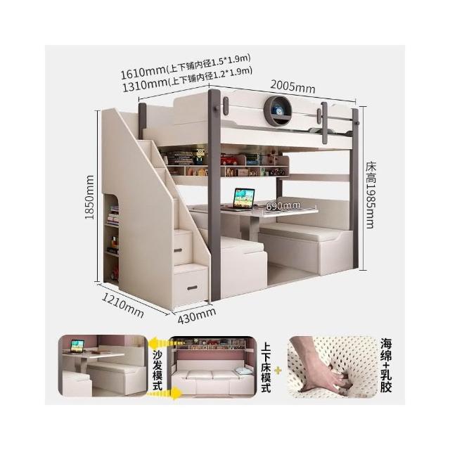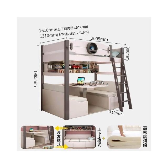 北歐上床下桌高低床帶書桌多功能上下床兒童床 雙層床 上下舖床架 高架床 上下舖 雙人床架 雙人床 子母床 OIQH