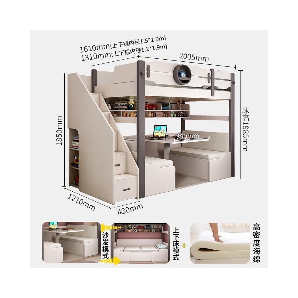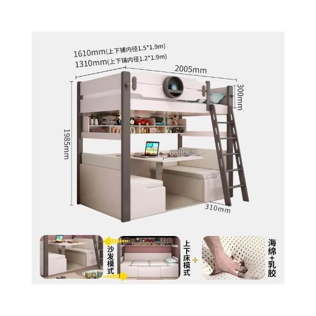 北歐上床下桌高低床帶書桌多功能上下床兒童床 雙層床 上下舖床架 高架床 上下舖 雙人床架 雙人床 子母床 OIQH