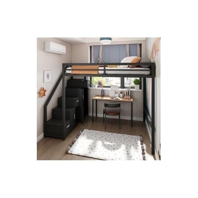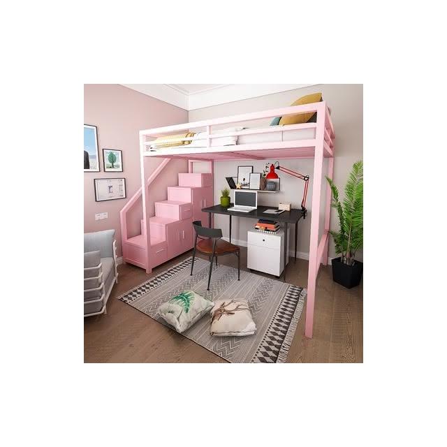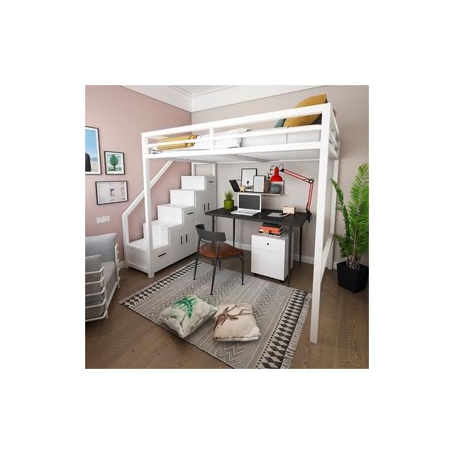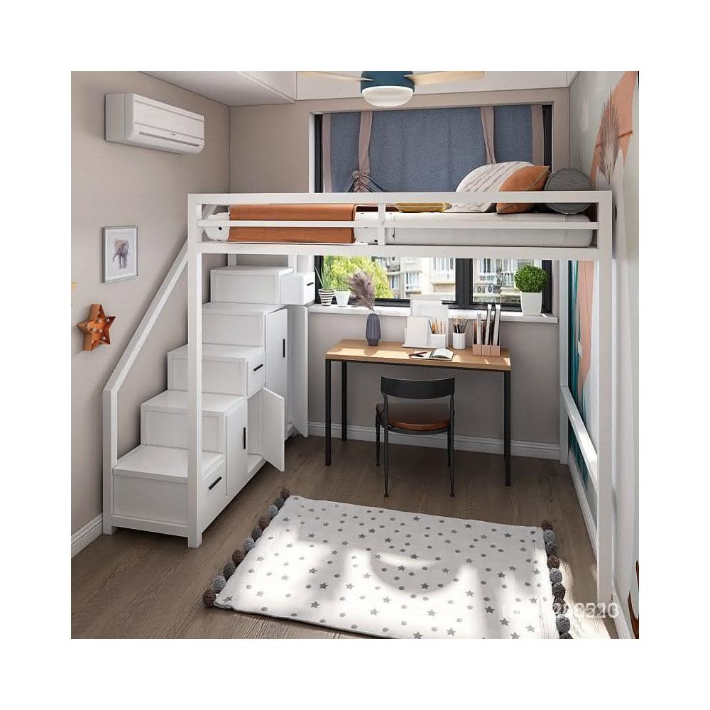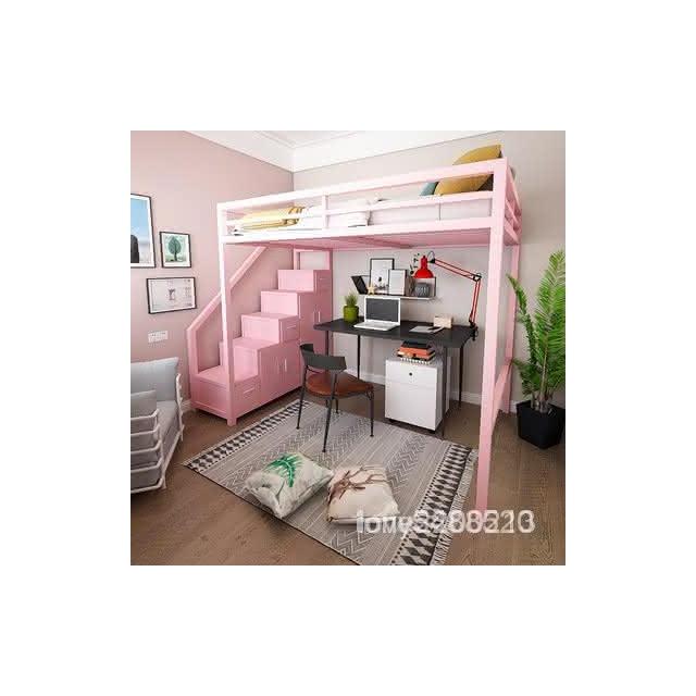 北歐臥室鐵藝床 輕奢傢用帶櫃子高低床 高架床 上下舖 雙人床架 雙層床 雙人床 子母床 上下床 KUUX