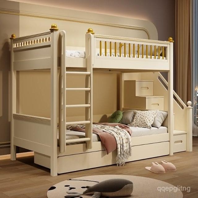 免運 上門安裝 上下床 兒童床男孩女孩子母床組閤床帶梯櫃輕奢兒童房雙人床全實木上下床雙層床 子母床 雙人床 上下鋪