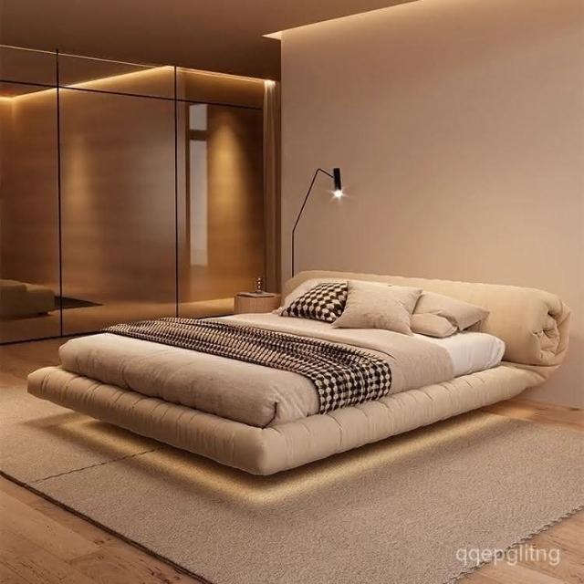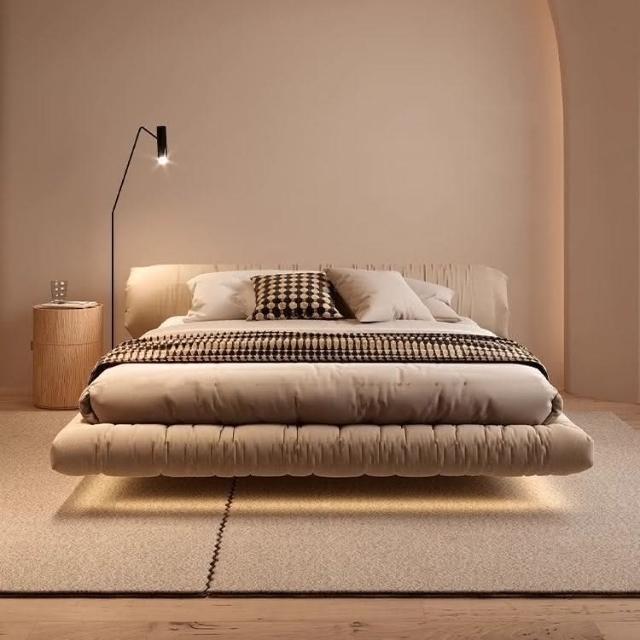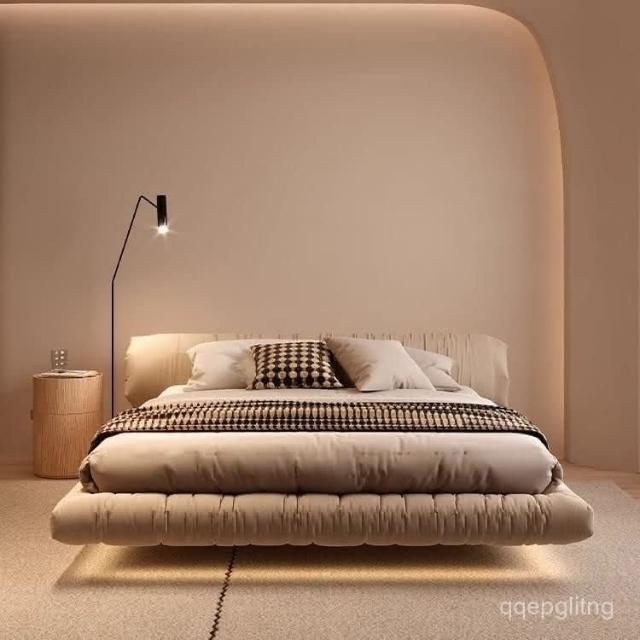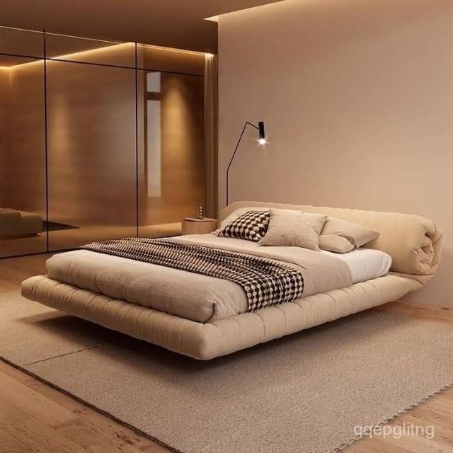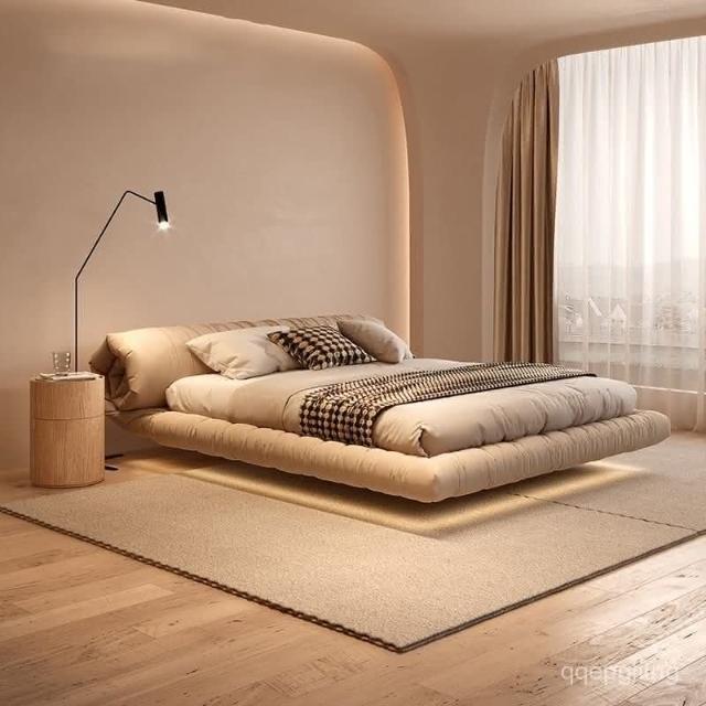 免運 實木床架#懸浮床 懸浮床北歐侘寂風主臥室現代簡約雙人意式網紅花捲包落地床雙人床 5寸床 6寸床 排骨架