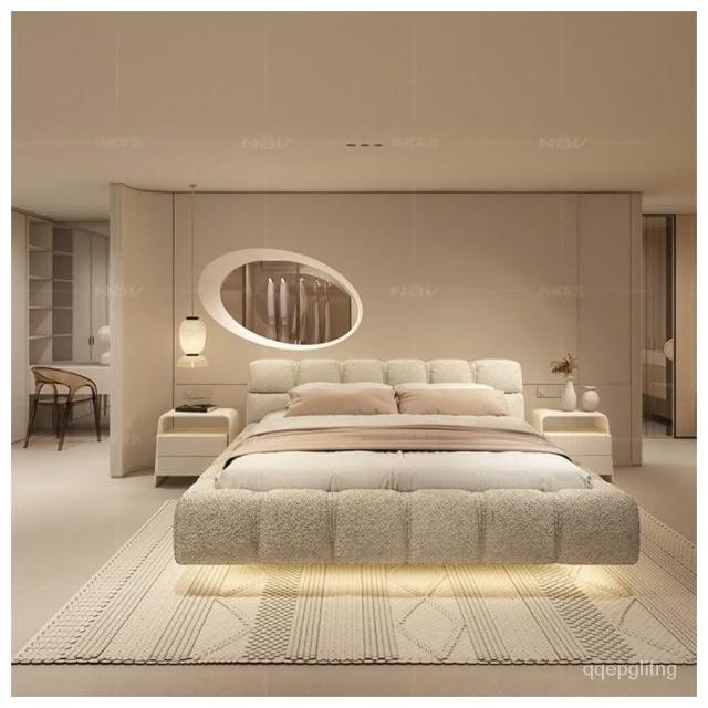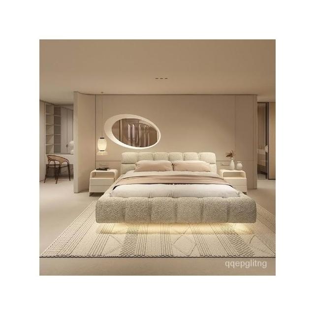 免運 實木床架#懸浮床 奶油風懸浮床現代簡約雲朵泡芙床新款主臥科技布大床北歐雙人布床雙人床 5寸床 6寸床 排骨架