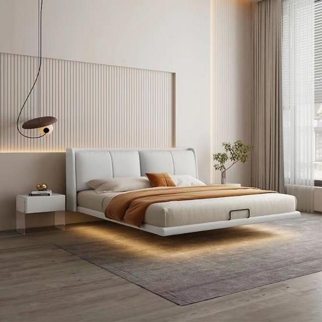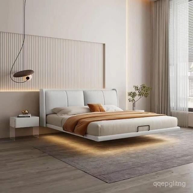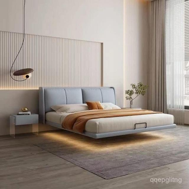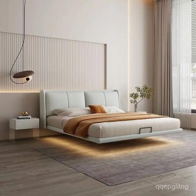 免運 實木床架#懸浮床 極簡懸浮床意式新款婚床現代簡約主臥耳朵床網紅懸空高檔雙人床雙人床 5寸床 6寸床 排骨架