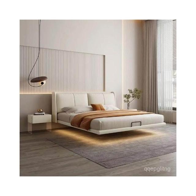 免運 實木床架#懸浮床 極簡懸浮床意式新款婚床現代簡約主臥耳朵床網紅懸空高檔雙人床雙人床 5寸床 6寸床 排骨架