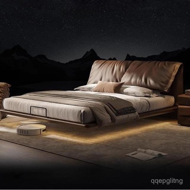 免運 實木床架#懸浮床 輕奢現代簡約大象耳朵懸浮床主臥室簡約意式極簡真皮床網紅軟包床雙人床 5寸床 6寸床 排骨架