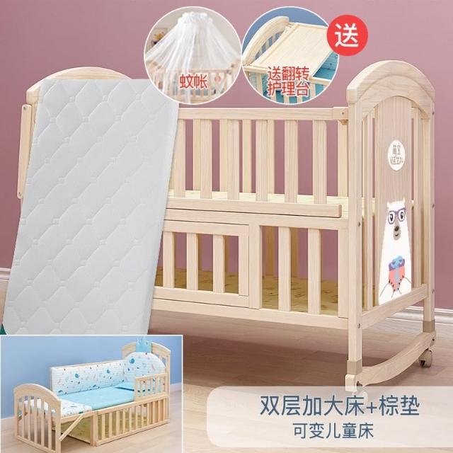 工廠直銷 免運 免稅 嬰兒床實木原木無漆新生兒bb床多功能可移動可變兒童床拚接大床嬰兒床 兒童床 EIYV