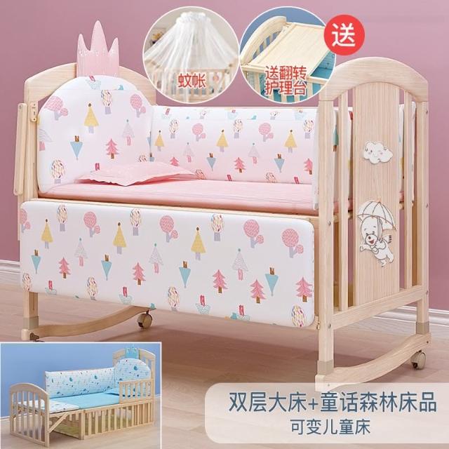 工廠直銷 免運 免稅 嬰兒床實木原木無漆新生兒bb床多功能可移動可變兒童床拚接大床嬰兒床 兒童床 EIYV