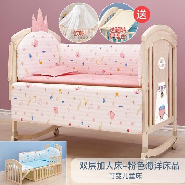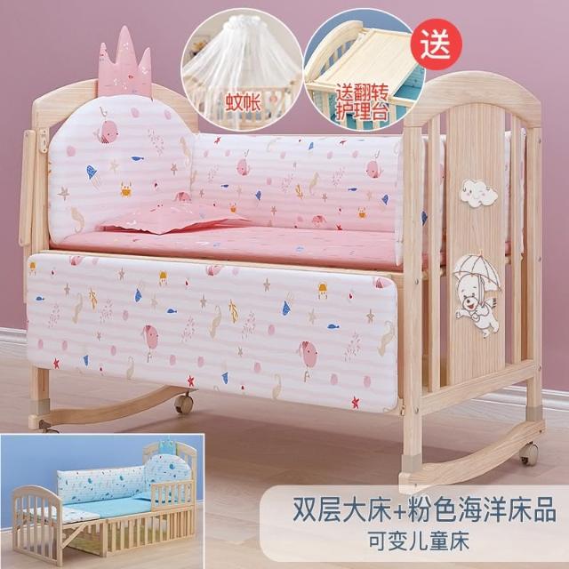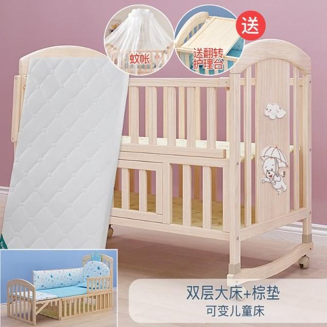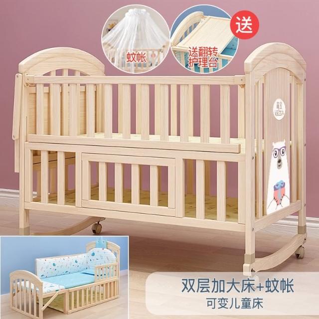 工廠直銷 免運 免稅 嬰兒床實木原木無漆新生兒bb床多功能可移動可變兒童床拚接大床嬰兒床 兒童床 EIYV