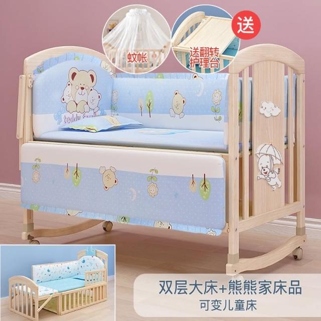 工廠直銷 免運 免稅 嬰兒床實木原木無漆新生兒bb床多功能可移動可變兒童床拚接大床嬰兒床 兒童床 EIYV