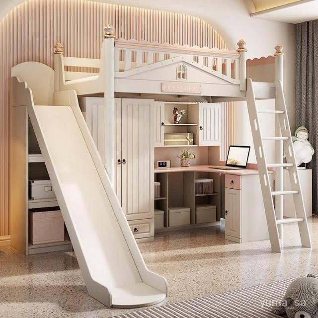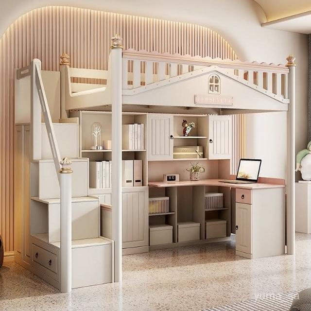 上床下桌女孩高架床小戶型雙層床兒童上下床帶書桌衣櫃粉色多功能 上下床 上下鋪 床架 親子床 床 雙人床 雙層床 MXWT