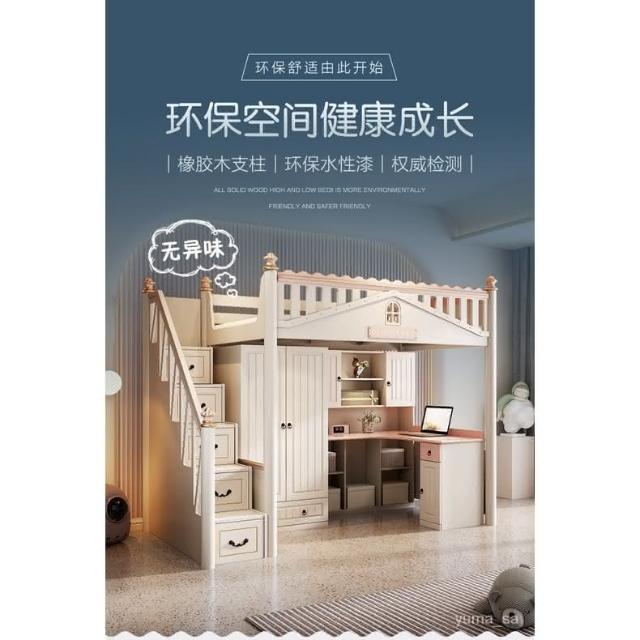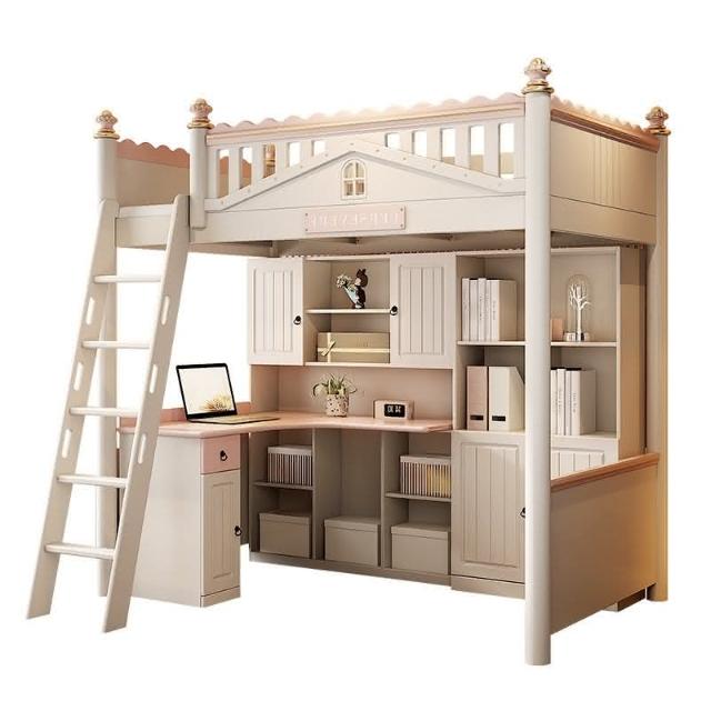 上床下桌女孩高架床小戶型雙層床兒童上下床帶書桌衣櫃粉色多功能 上下床 上下鋪 床架 親子床 床 雙人床 雙層床 MXWT
