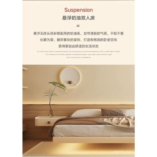 輕奢無床頭懸浮床現代簡約小戶型雙人床架侘寂奶油風懸空床網紅款 床架 輕奢床 床 雙人床 大床 6尺床 儲物床 ON9W