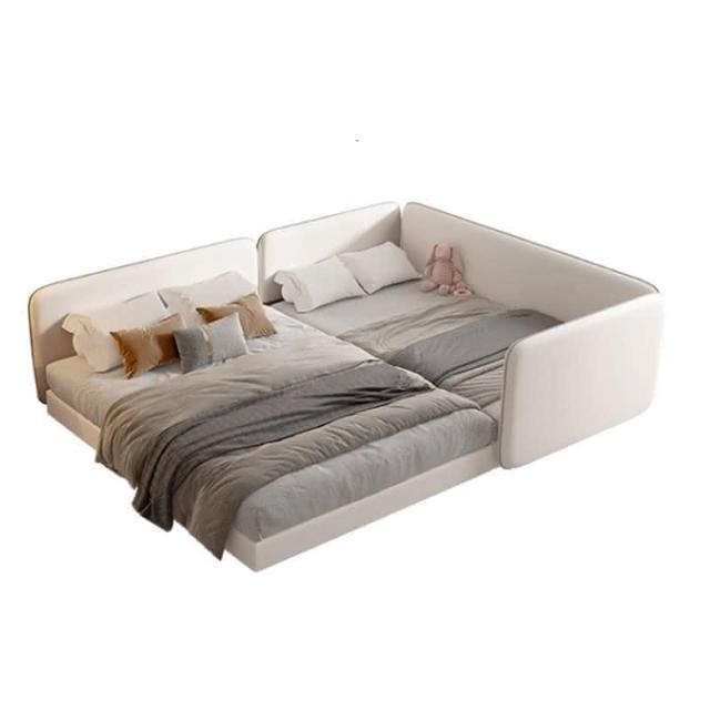 主臥親子床二胎子母雙人佈藝床現代簡約一傢四口超大床兒童拚接床 雙人床 拚接床 床架 床 親子床 榻榻米床 PUMK