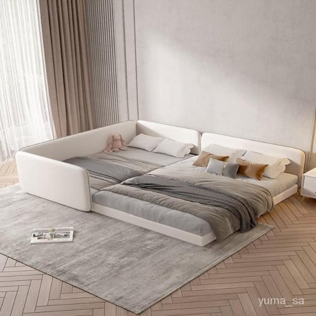 主臥親子床二胎子母雙人佈藝床現代簡約一傢四口超大床兒童拚接床 雙人床 拚接床 床架 床 親子床 榻榻米床 PUMK