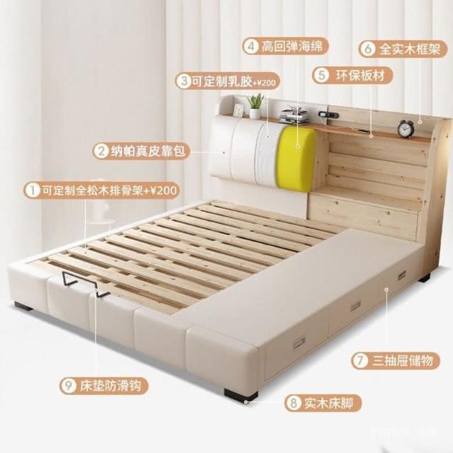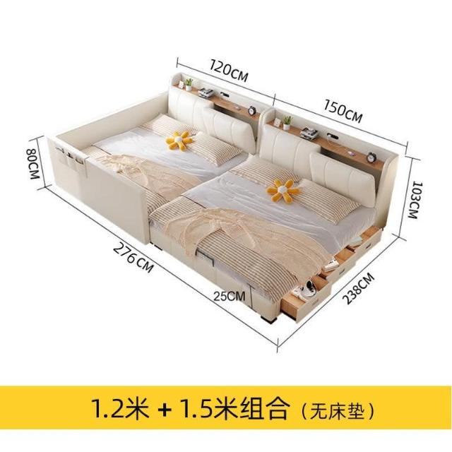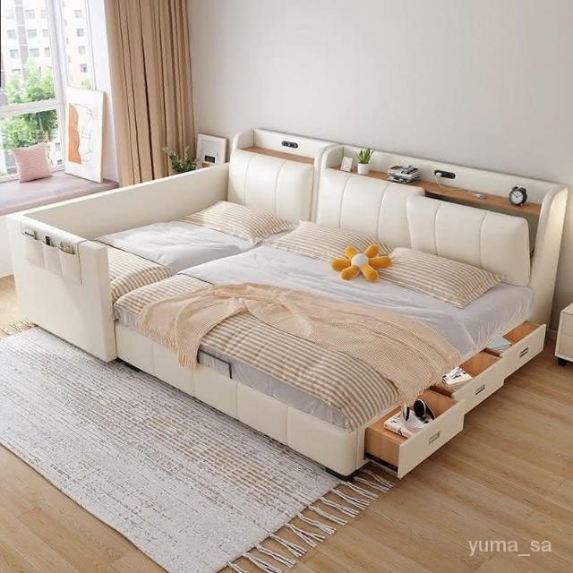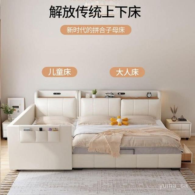 親子床二胎傢庭床現代簡約一傢多口超大床拚接床多功能儲物真皮床 雙人床 拚接床 床架 床 親子床 榻榻米床 YPN8