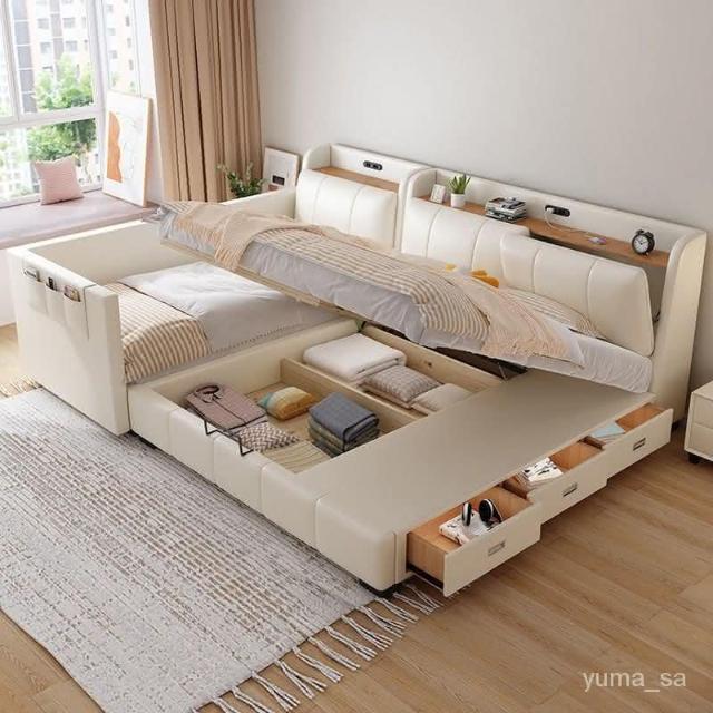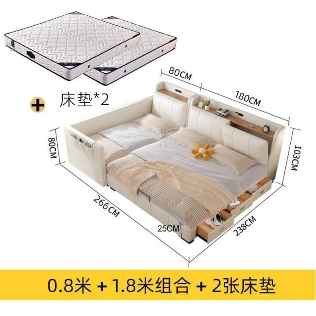 親子床二胎傢庭床現代簡約一傢多口超大床拚接床多功能儲物真皮床 雙人床 拚接床 床架 床 親子床 榻榻米床 YPN8