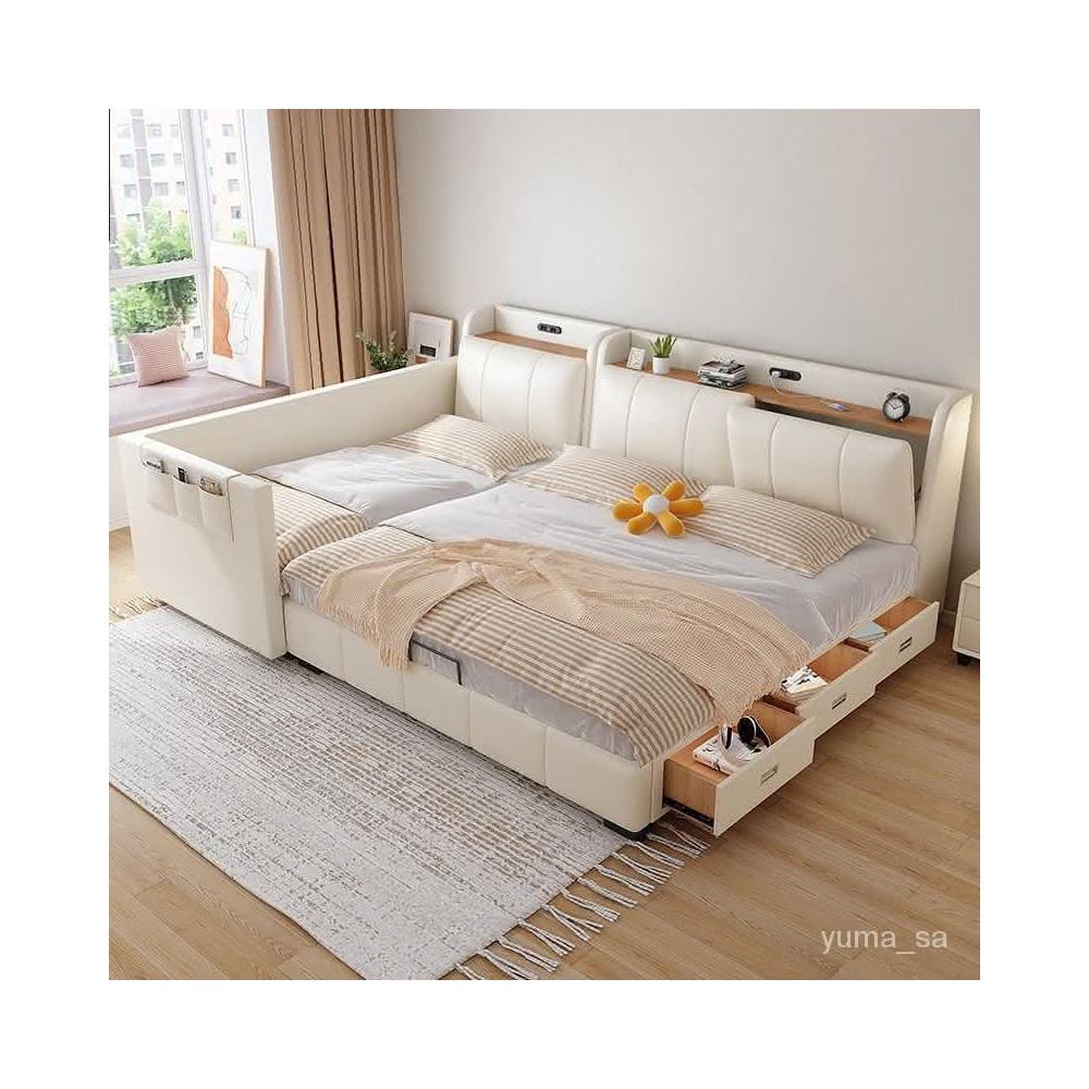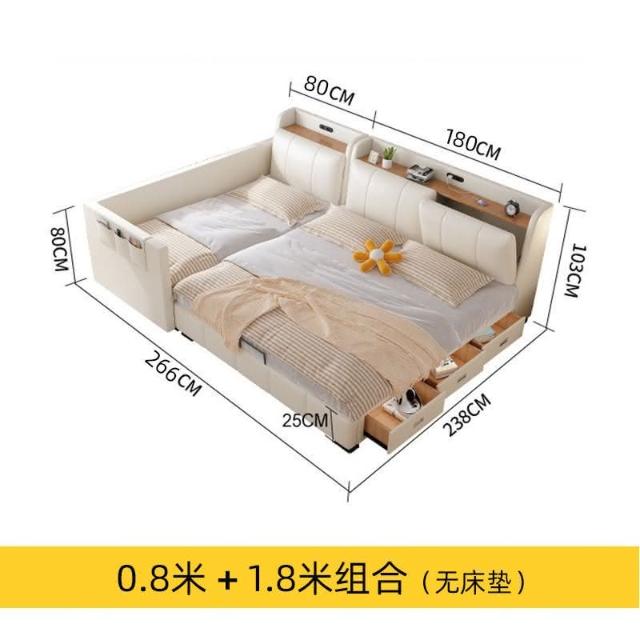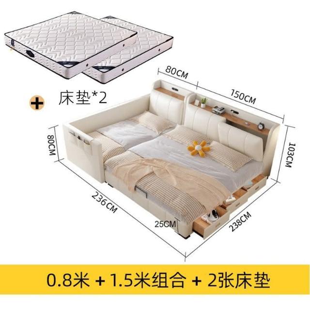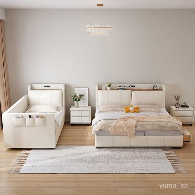 親子床二胎傢庭床現代簡約一傢多口超大床拚接床多功能儲物真皮床 雙人床 拚接床 床架 床 親子床 榻榻米床 YPN8