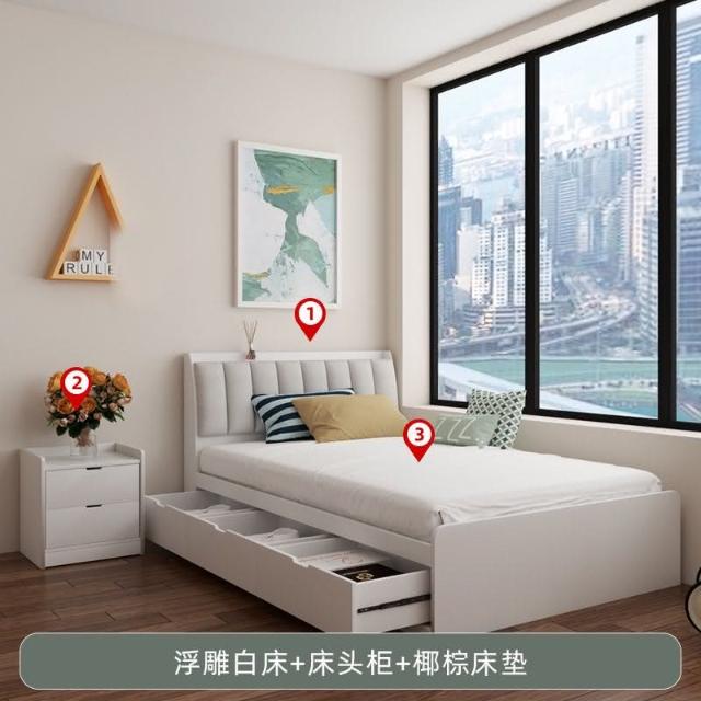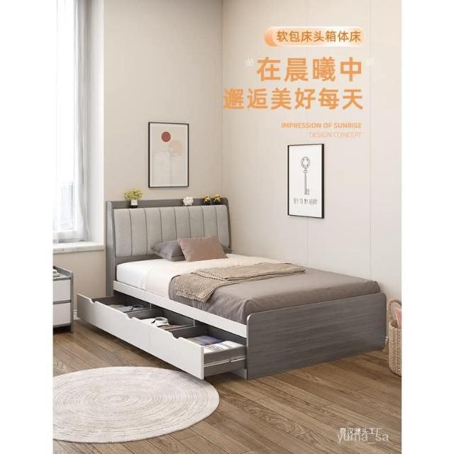1米單人床北歐小戶型臥室現代簡約儲物1.2米成人抽屜收納榻榻米床 床架 床 單人床 兒童床 儲物床 收納床 KNMA