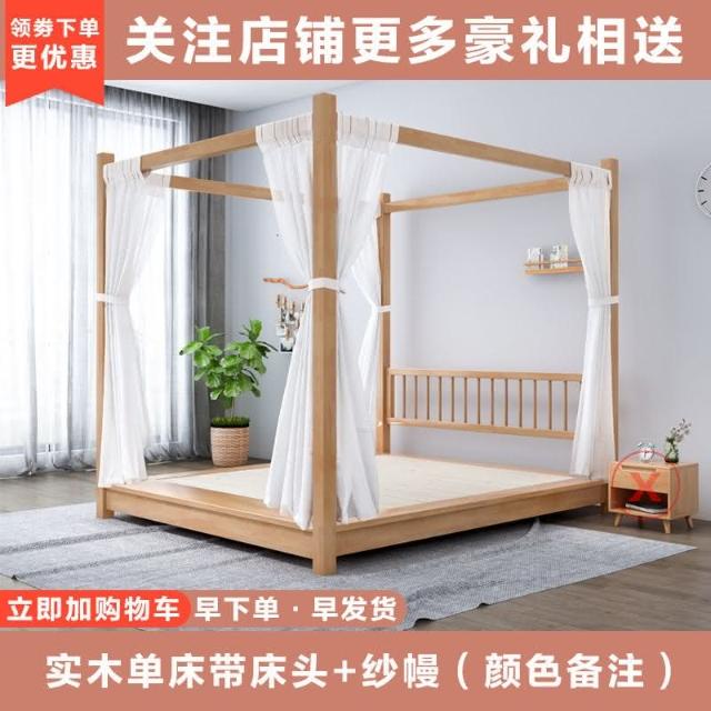 純全實木大床民宿四柱床1.8榻榻米主臥婚床2米簡易日式原木架子床床架 雙人床 大床 榻榻米床 多功能床 W5IF