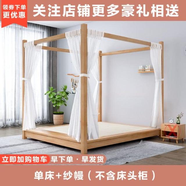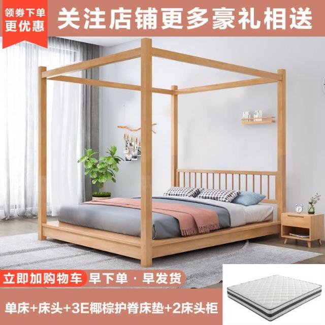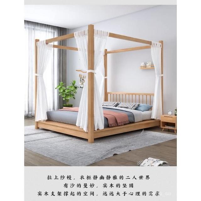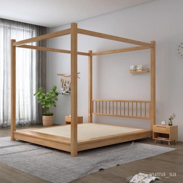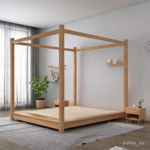 純全實木大床民宿四柱床1.8榻榻米主臥婚床2米簡易日式原木架子床床架 雙人床 大床 榻榻米床 多功能床 W5IF