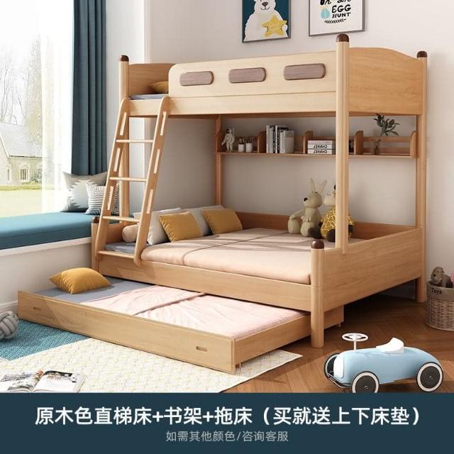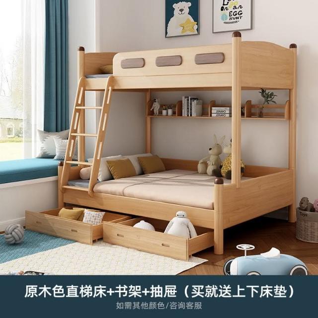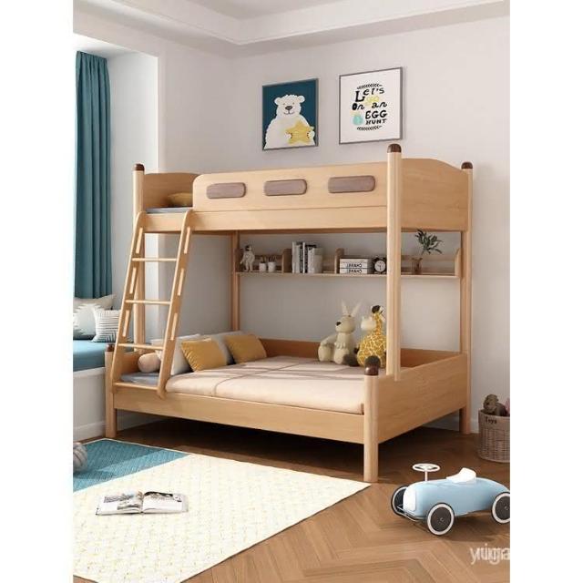 全實木子母床櫸木上下床北歐簡約兒童床成年高低上下舖木床雙層床 護欄床 多功能儲物床 高架床 高腳床 雙層床架 5RT8