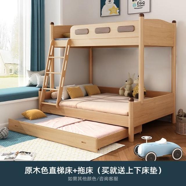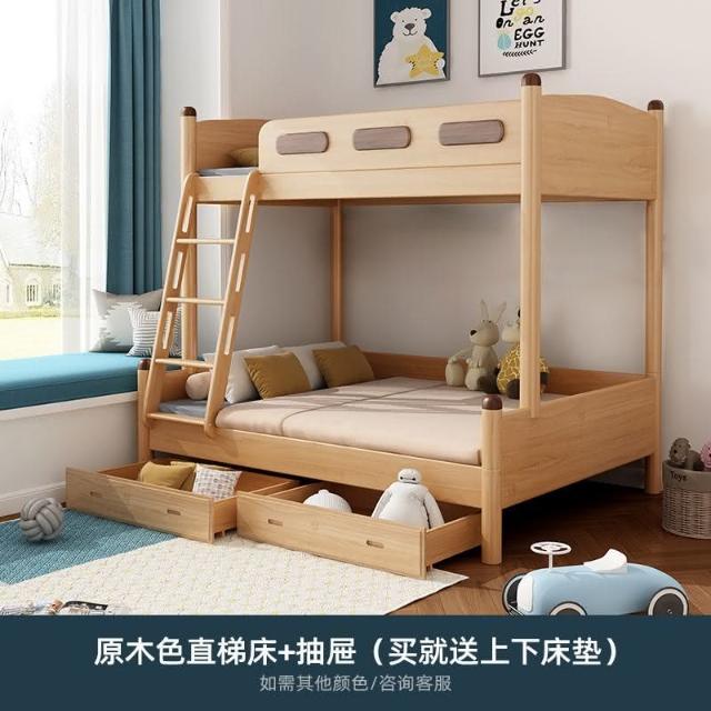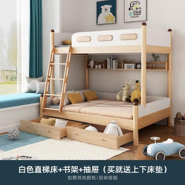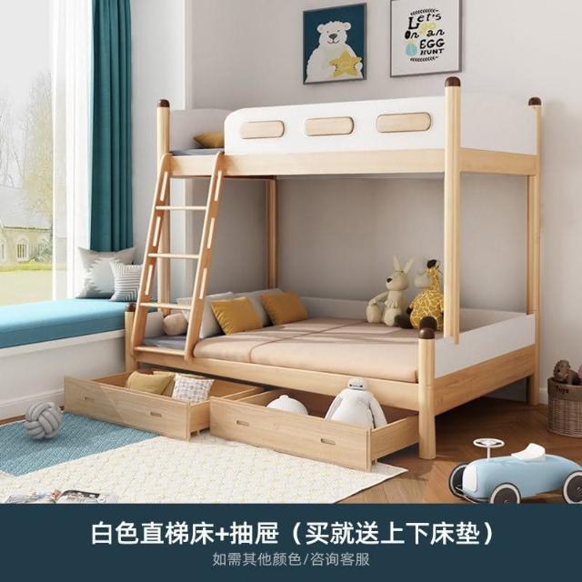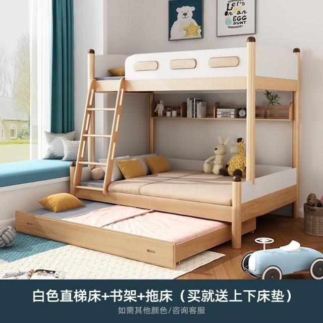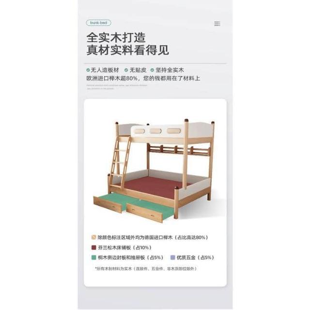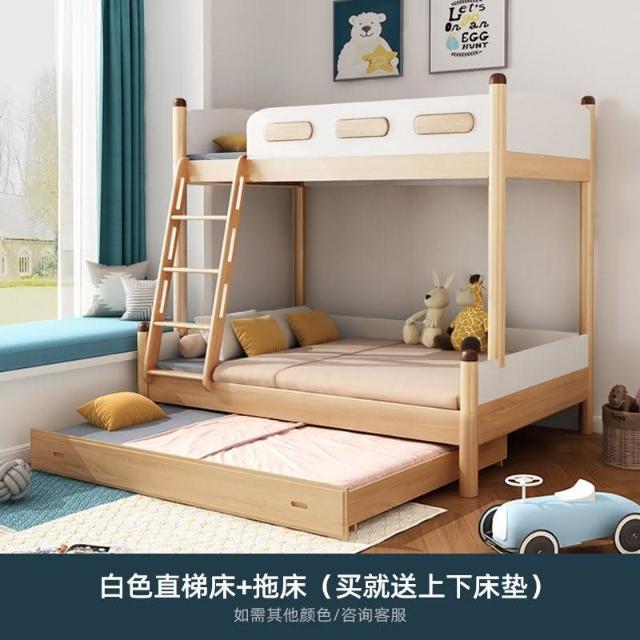 全實木子母床櫸木上下床北歐簡約兒童床成年高低上下舖木床雙層床 護欄床 多功能儲物床 高架床 高腳床 雙層床架 5RT8