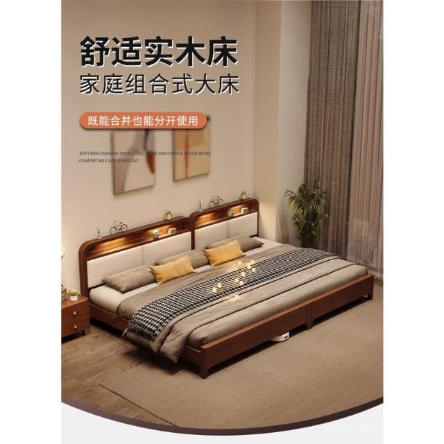 實木大床3米超大三人四人拚接床二胎傢庭主臥室傢用加寬2米親子床 雙人床 拚接床 床架 床 親子床 榻榻米床 SH5R