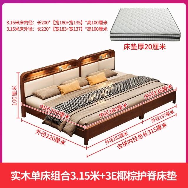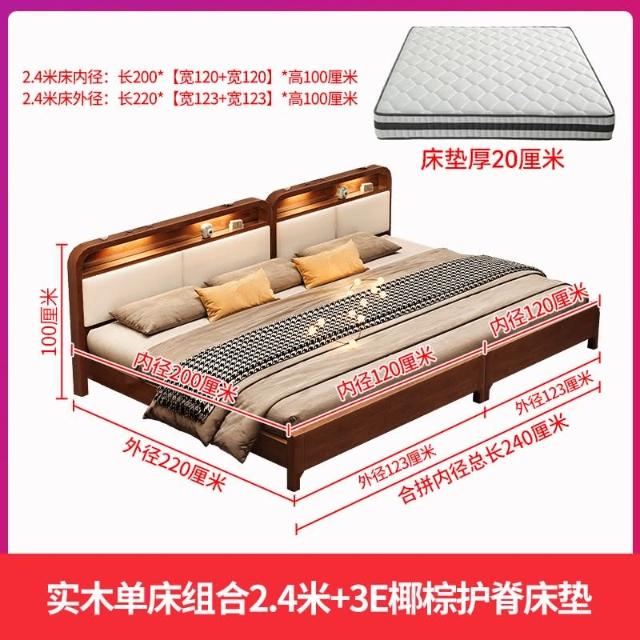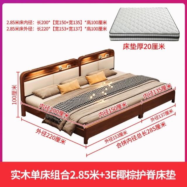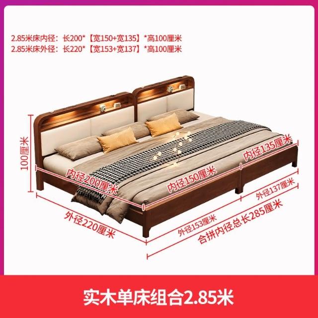 實木大床3米超大三人四人拚接床二胎傢庭主臥室傢用加寬2米親子床 雙人床 拚接床 床架 床 親子床 榻榻米床 SH5R