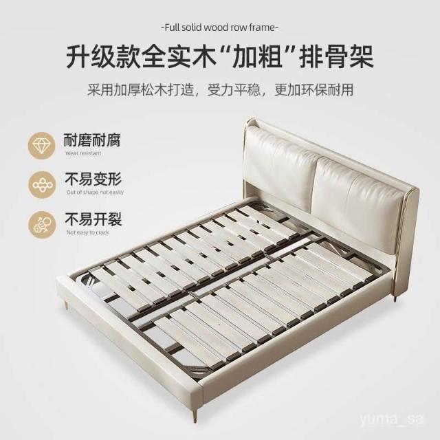 真皮床簡約輕奢1.5米北歐設計師軟包主臥傢具雙人1.8米白色皮床 床架 輕奢床 床 雙人床 大床 6尺床 儲物床 X26