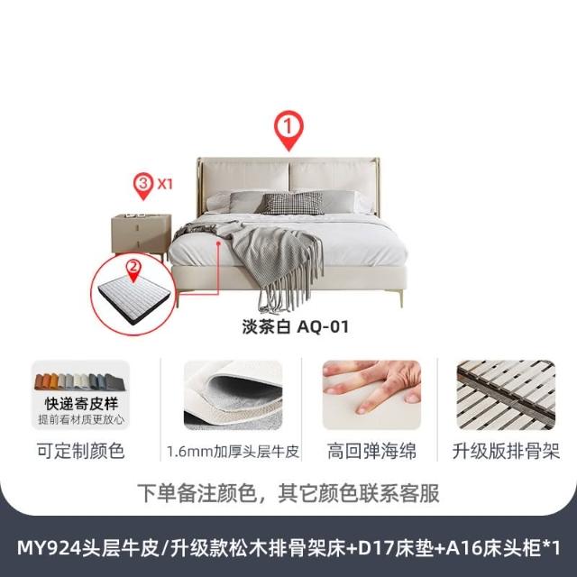 真皮床簡約輕奢1.5米北歐設計師軟包主臥傢具雙人1.8米白色皮床 床架 輕奢床 床 雙人床 大床 6尺床 儲物床 X26