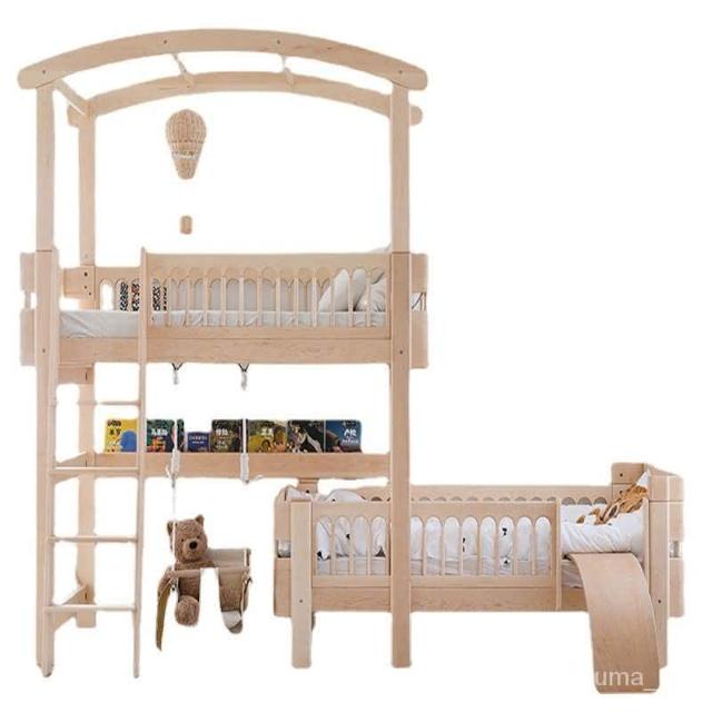 源頭廠傢直銷北美硬楓木實木兒童床子母床高低床高架床兒童房子床 上下床 高架床 床架 親子床 上下鋪 床鋪 D8GX