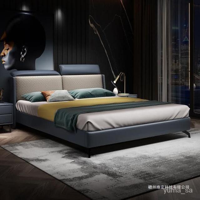 意式輕奢皮床傢用大小戶型現代簡約主臥室1.5米1.8米單雙人軟包床 床架 輕奢床 床 雙人床 大床 6尺床 儲物床 FR