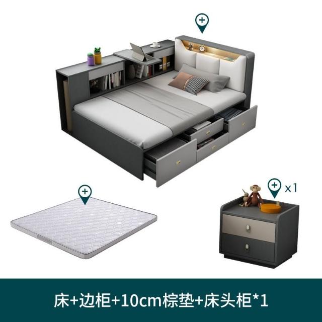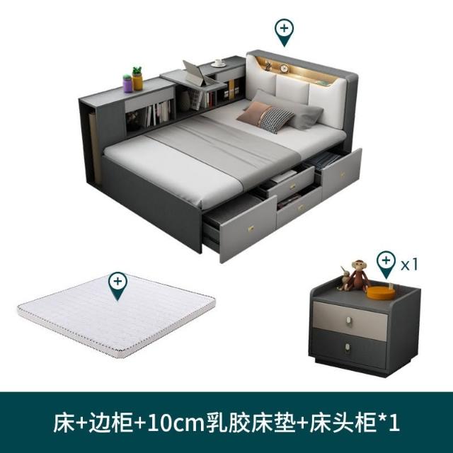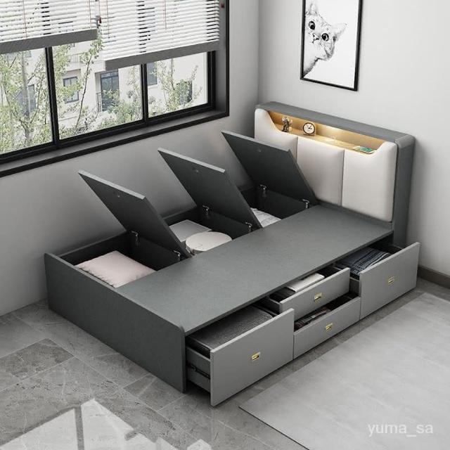 現代簡約榻榻米床臥室多功能書架兒童床一體高箱儲物單雙人收納床床架 雙人床 大床 榻榻米床 多功能床 MEXG