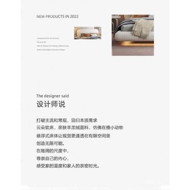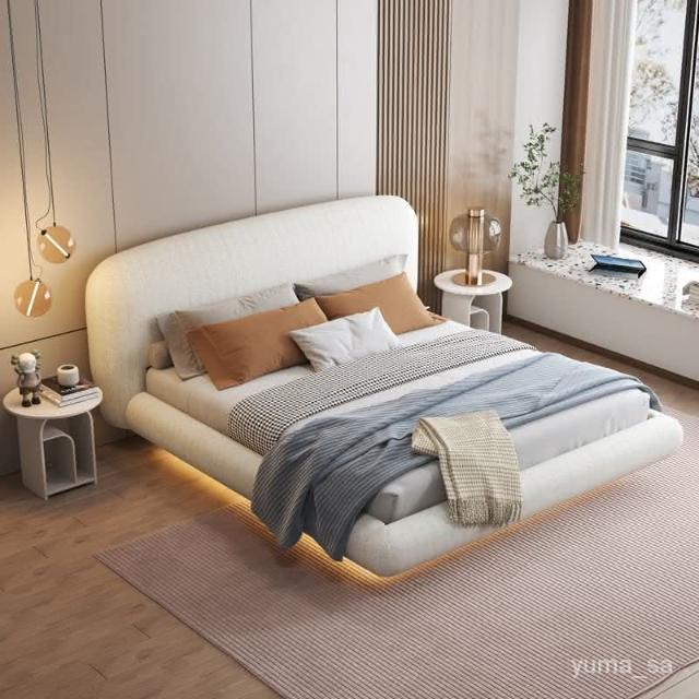 羊羔風主臥床現代意式極簡輕奢奶油床設計師佈藝簡約絨榻榻米 輕奢床 真皮床 簡約床 親子床 儲物床 超大床 懸浮床 主臥床